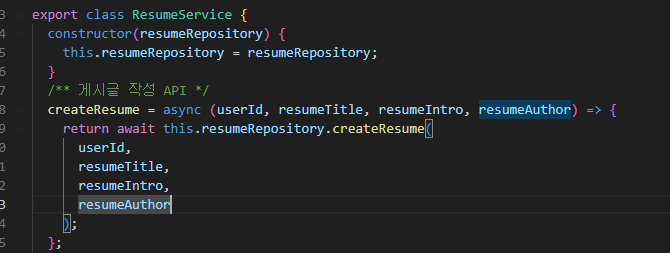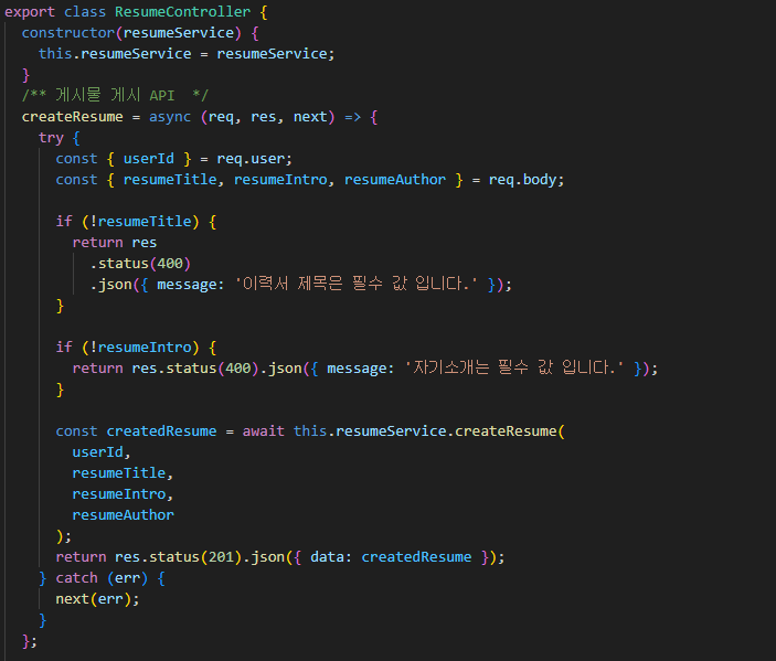 클라이언트의 요청을 전달하는 controller.js 안의 함수 중 일부임