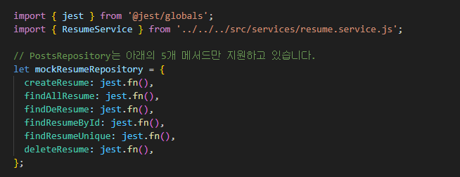 테스트 코드는 단위테스트를 지원한다 가장 먼저 설정해줄 것은 가짜 함수 만들기.