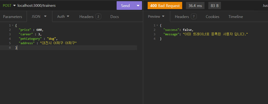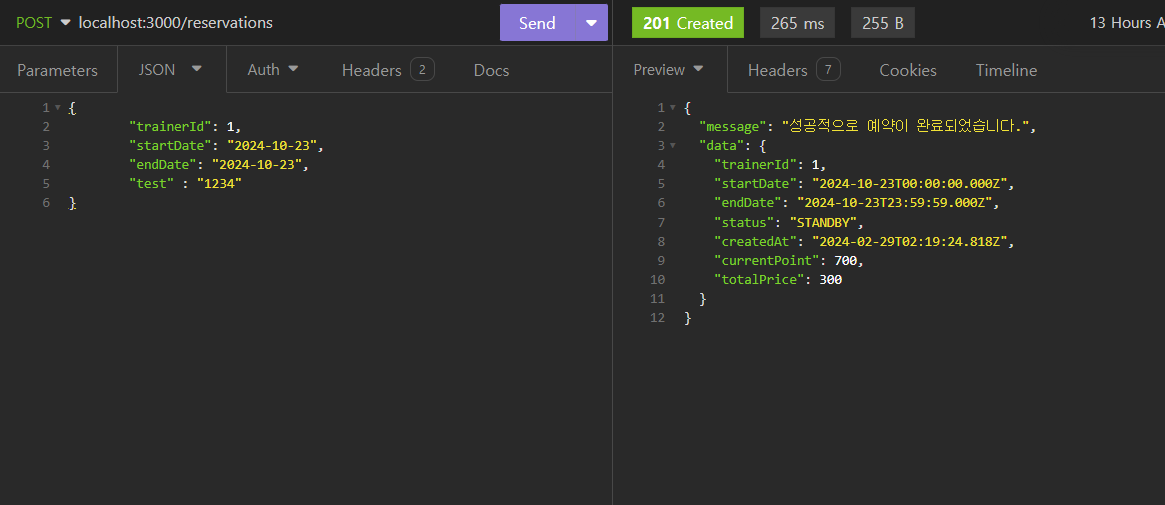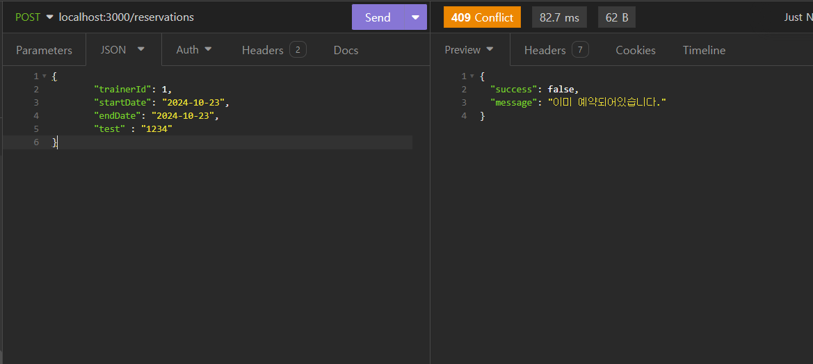 예약이 된 날짜는 예약하지 못하게 예외처리를 해주었다.