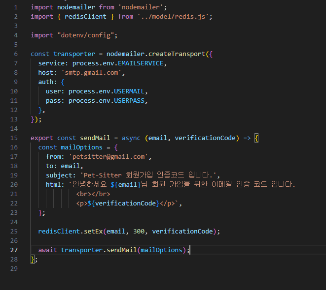 utils 폴더에 노드 메일러 세팅을 해줌