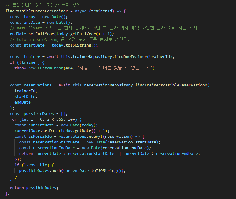 트레이너 예약 가능한 날짜 조회이다