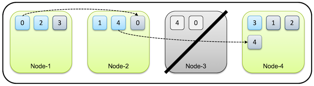 만약 시스템 다운이나 네트워크 단절등으로 노드3이 사라지면 복구 되기를 일단 기다린다.